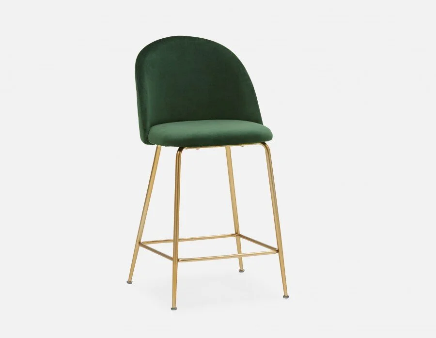 How are these stools going to be used and who will be sitting in them? Do you have young kids that will often be using them? Perhaps something with a back would make sense to avoid falls. How is the clearance around the stools? If it’s tight quarters, you may consider a swiveling stool so that it’s fairly easy to get on and off the stools without getting in the way. Alternatively, you can choose a stool with no back so that they can be tucked out of the way when not in use. If you’re a big entertainer and it’ll be the main eating center, the comfort of the seat will be a very important detail, so sourcing an upholstered seat might be the way to go.